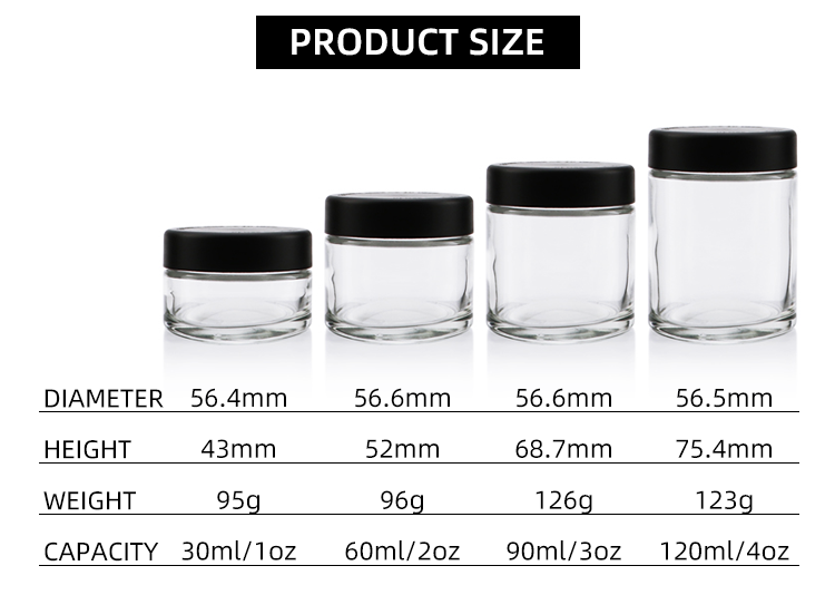 2oz 3oz 4oz glass jar 3.5g flower package child resistant custom color design child proof bottle glass bottle frasco de vidro