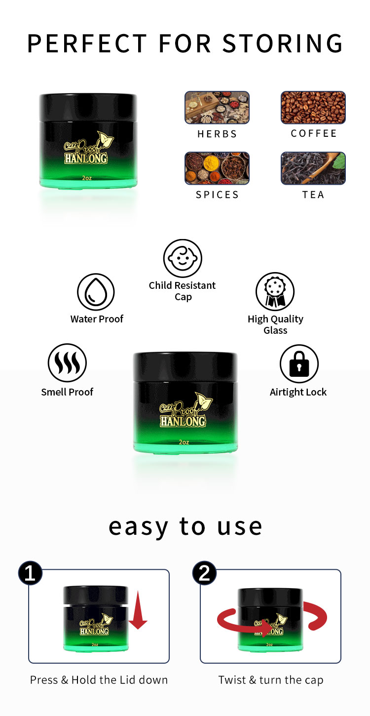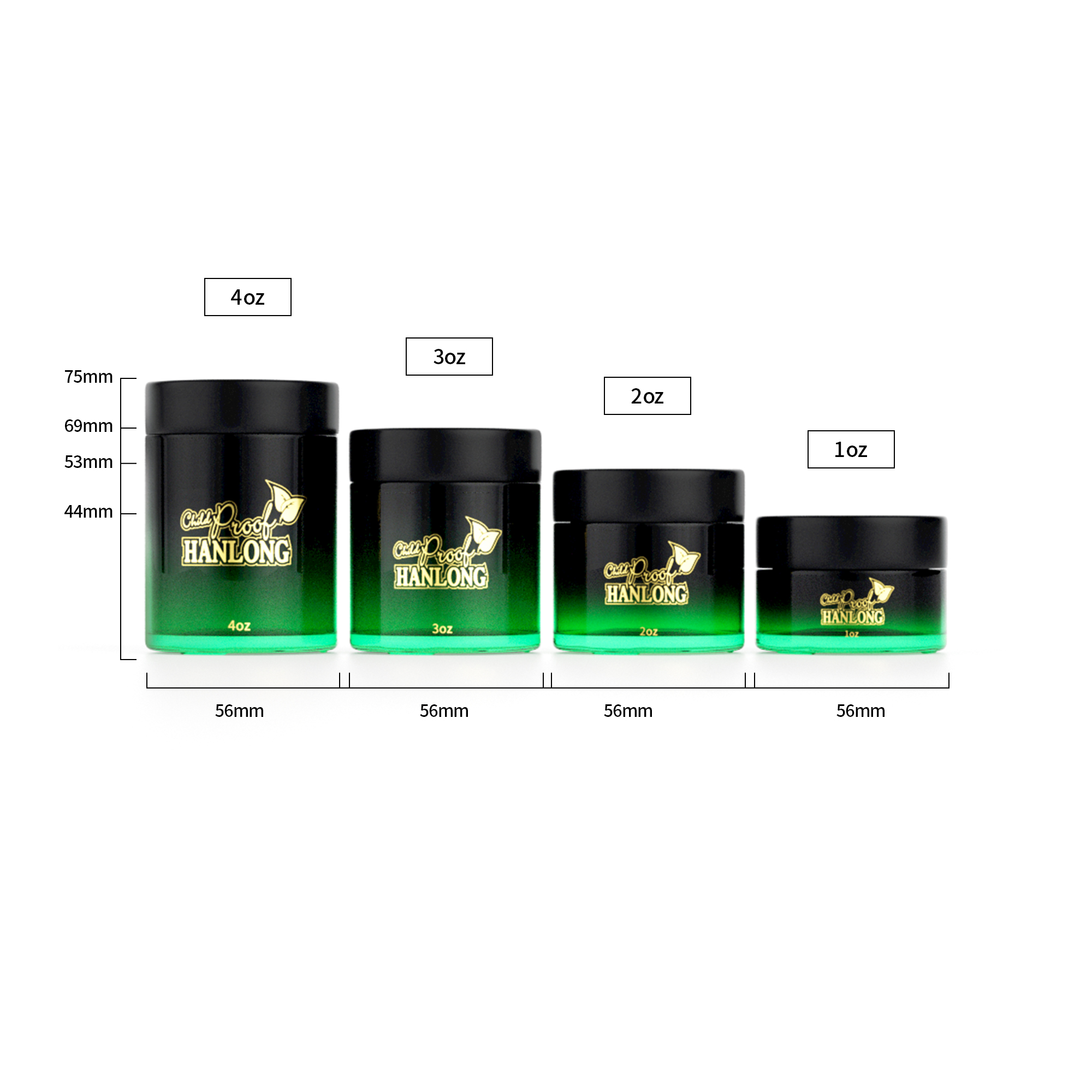 3.5 gram custom design Gradient matte glass jar smell proof jar dry flower packing container glass jar with child resistant lid