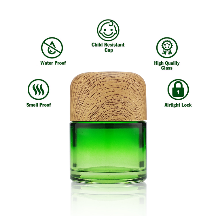 5g 50g 70g 110g Empty airtight smell proof container child proof cap child resistant packaging custom wholesale 3.5g glass jar