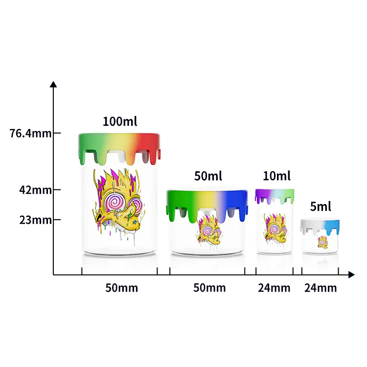 5ml 10ml 50ml 100ml custom logo transparent concentrate jar silicone smell proof jar wax storage glass bottle