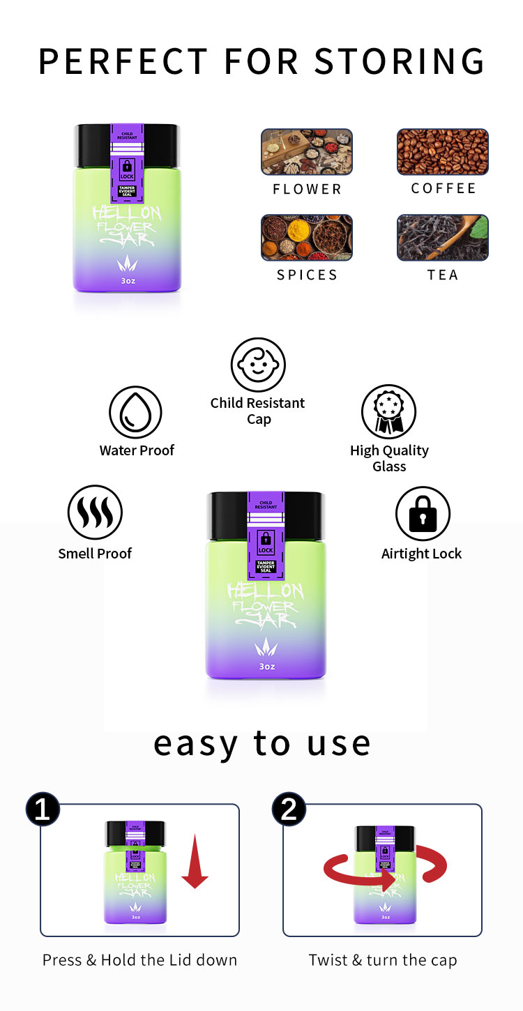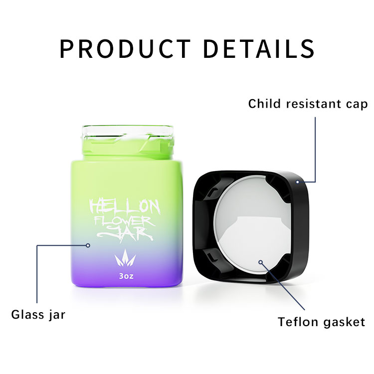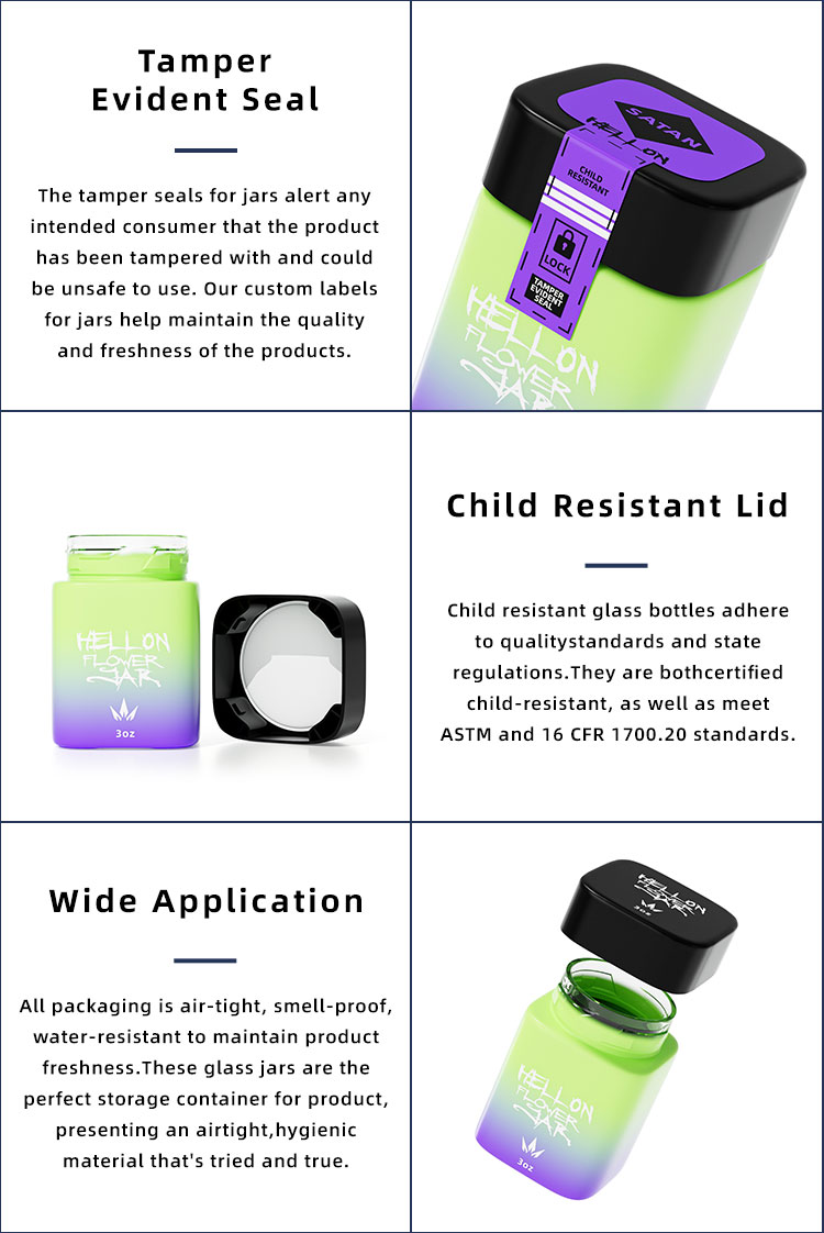Custom frosted glass eight jar child proof glass jars 1 grams 3.5 grams flower smell proof square glass jar