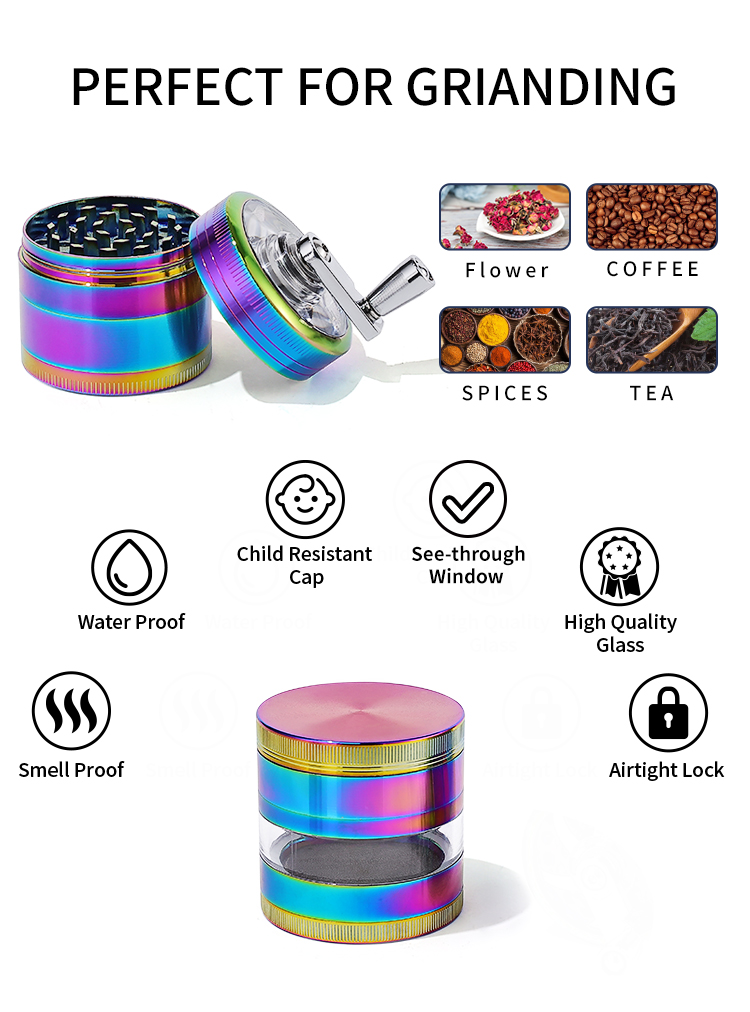 Custom Logo Burnisher Grinder Mechanical Metal Aluminium Grinders Zinc Alloy Material Coffee Grinder with Magnetic Closure