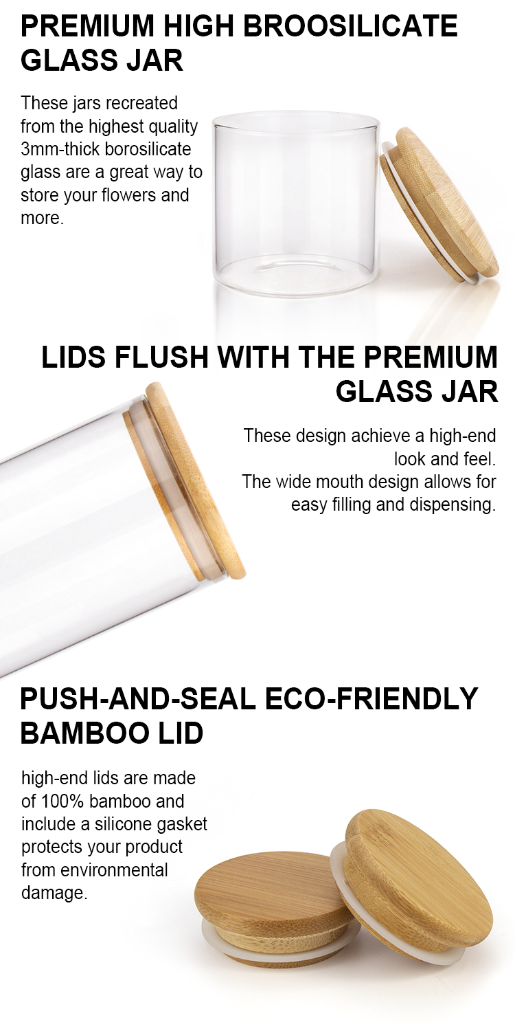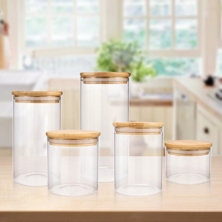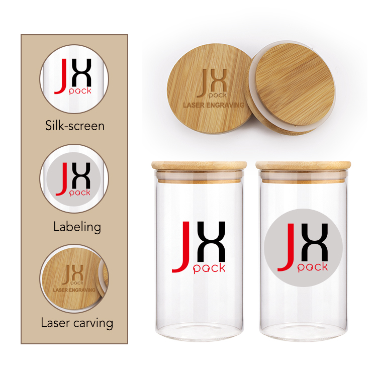 Custom Luxury Logo Printing Eco-friendly bamboo wooden lid borosilicate glass storage food airtight containers frosted glass jar