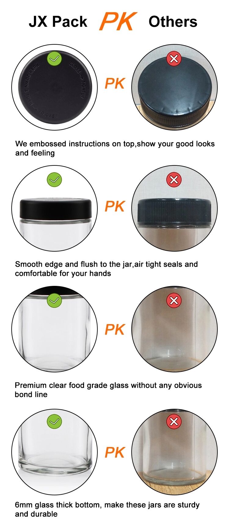 Flower child resistant glass jar clear glass jars with smell proof lids