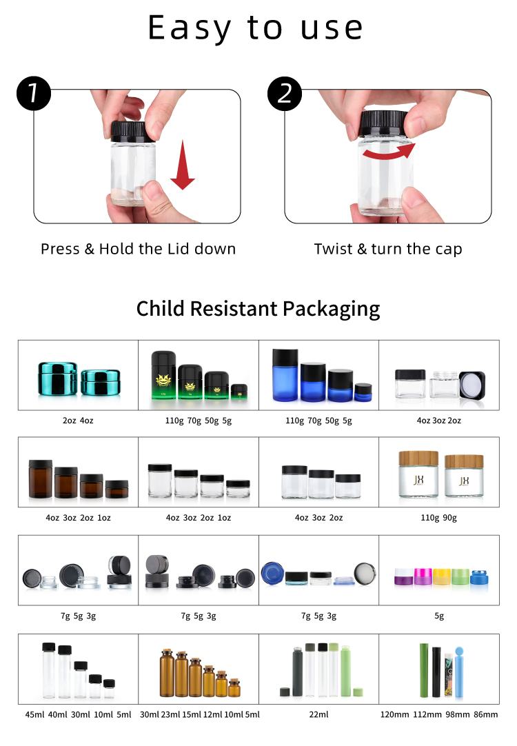 If you are interested in our products,please tell us Email: sales3@crcpack.com Tel/WeChat: 18813947686 WhatApp: +86 18813947686 Capacity:1oz 2oz 3oz 4oz Cap type: child resistant cap