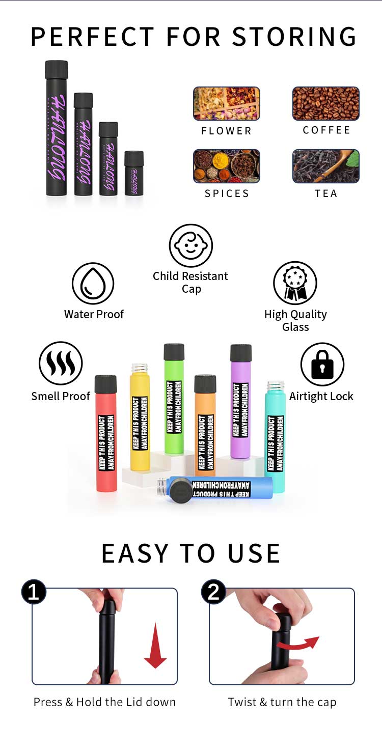 King Size 120mm 125mm Glass Child Proof Tube Customized Label Stickers Pre Tube Container Glass Tube