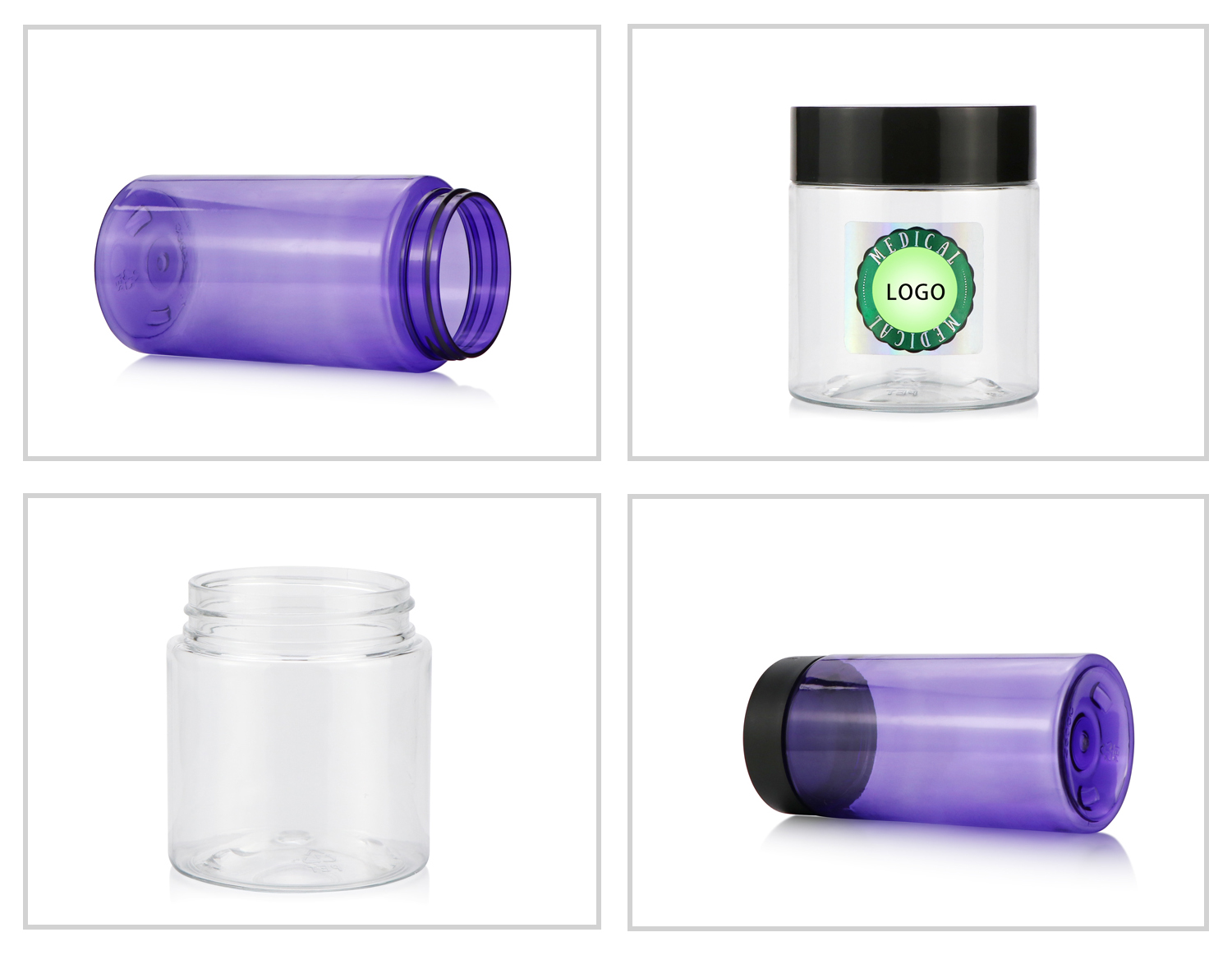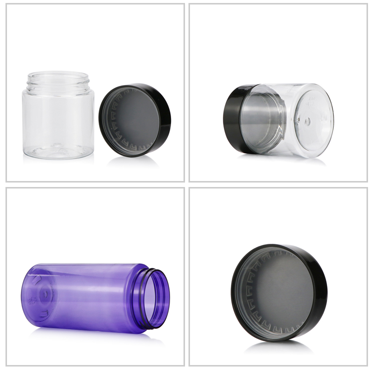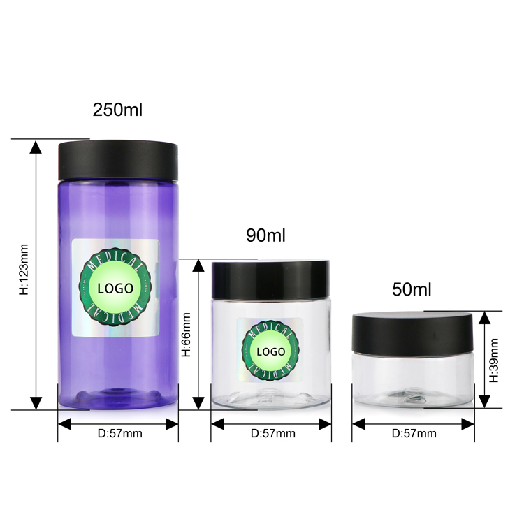 Latest airtight child resistant plastic jar cosmetic cream empty round colorful eco-friendly PET plastic jars with CRC cap