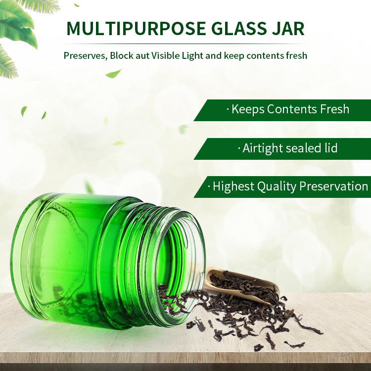 Latest customized child resistant glass jar embossed glass candle jar glass jar with CRC cap