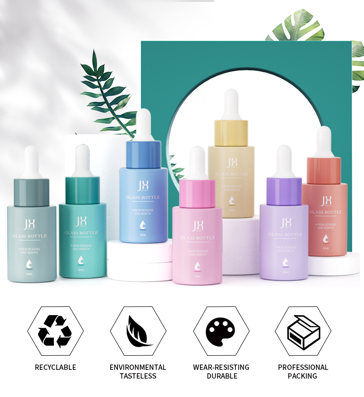 Luxury colorful pink green essential oil serum 30ml glass skincare dropper bottle for cosmetic