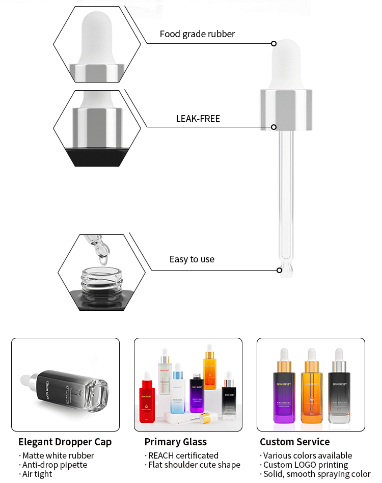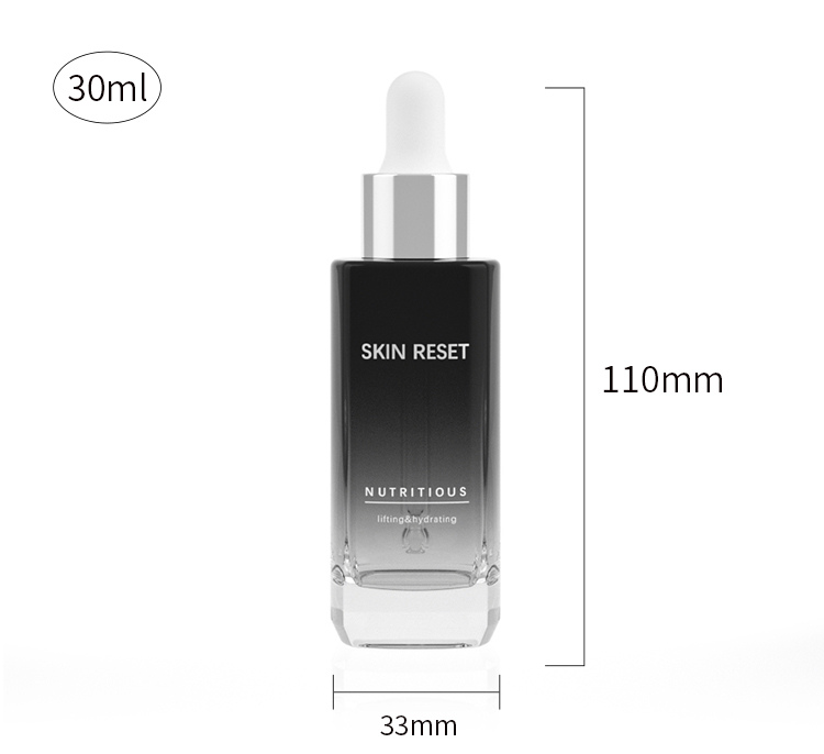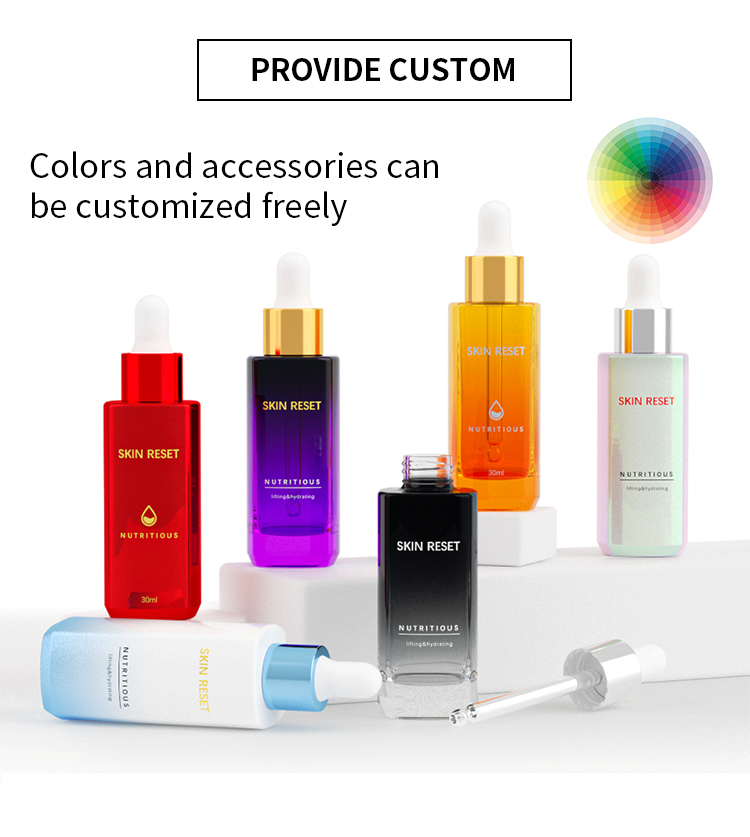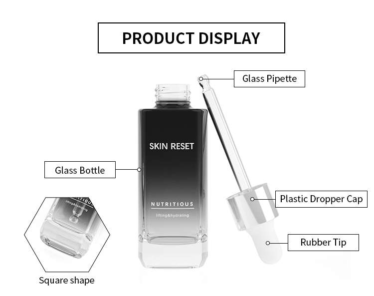 • OEM Recyclable thick bottom glass bottle square shape 30ml serum perfume glass essential oils dropper bottle
