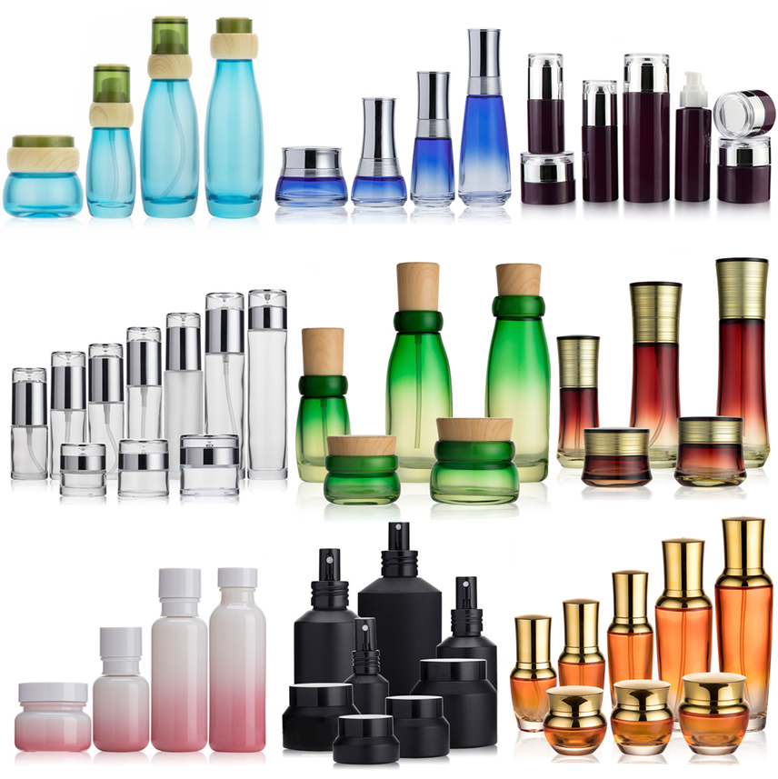 wholesale 50g 40ml 100ml 120ml cosmetic glass bottle sets glass jar for skincare face cream lotion bottle
