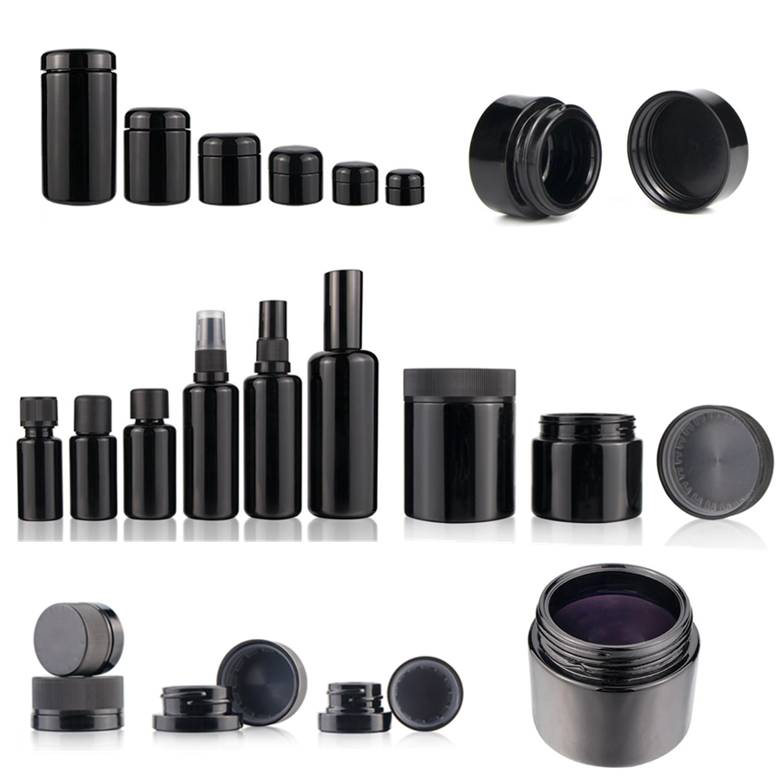 Wholesale large 30ml dark black violet glass jar vacuum packing
