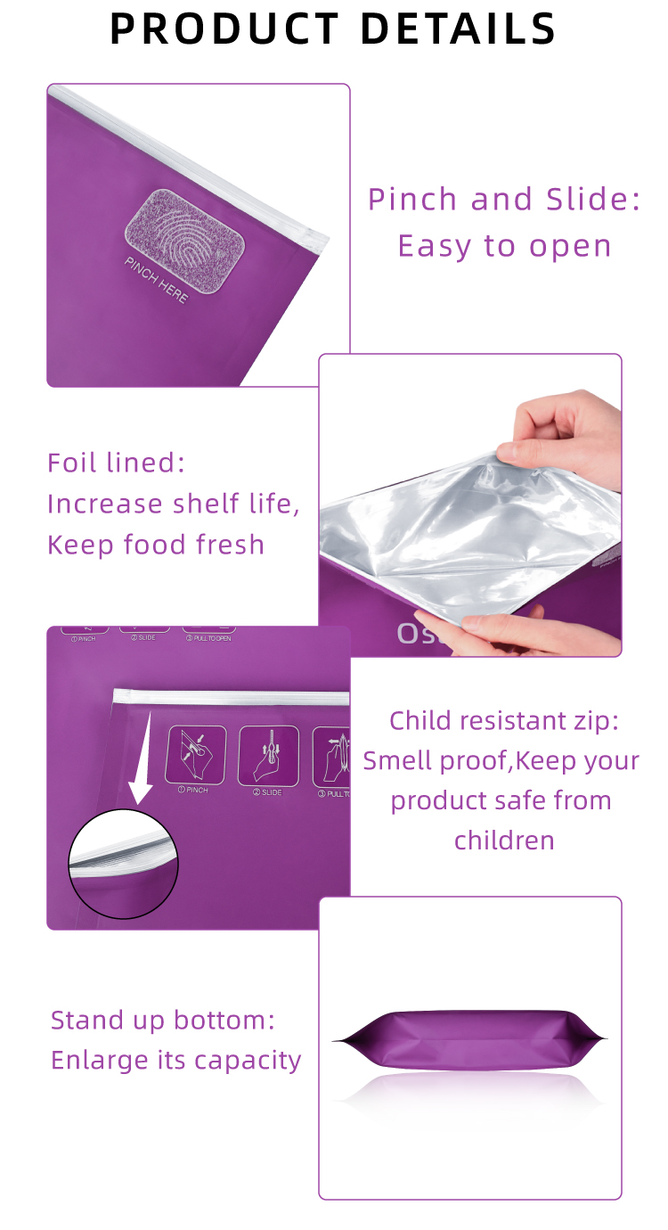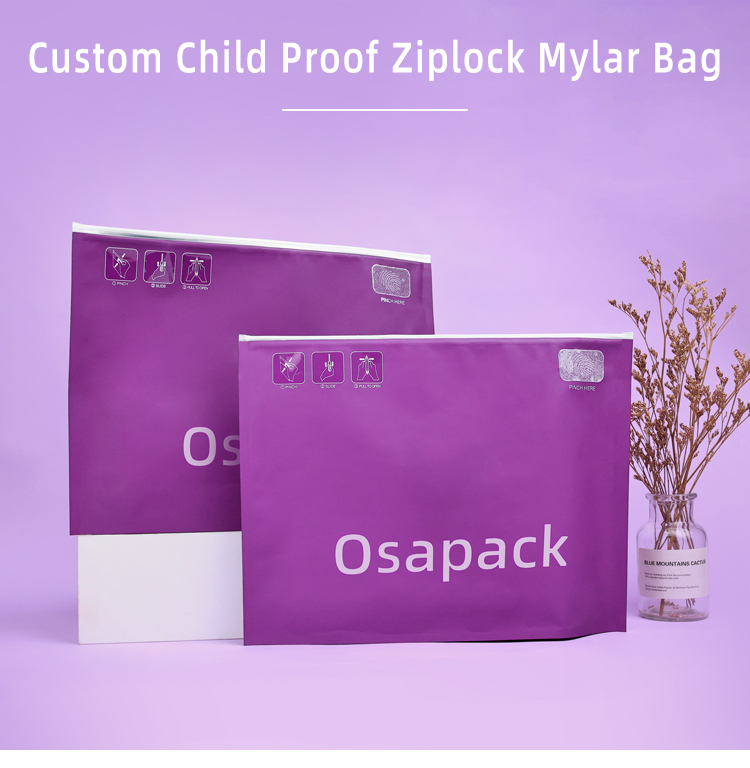 Wholesale Purple Zipper Pouch Custom Printed Zipper Bag Child Resistant 35 Mylar Bag Child Proof Plastic Packaging Bags